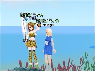 さんご礁に虎縞衣装^^