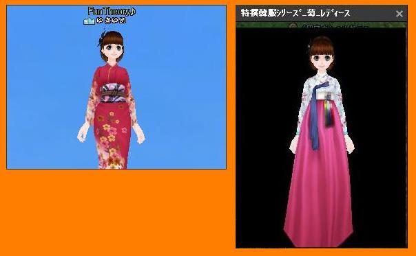 ゆきゆめ的にはチマチョゴリの方がかわいいと思う。右はLv60から着用可能のチマチョゴリ。