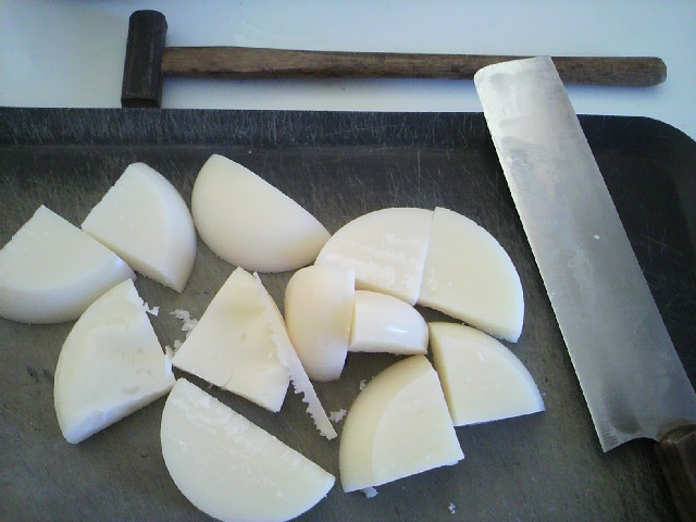 いつもは気にせず、包丁で切ってましたが、今年は試しに金づち出して叩いてみましたが・・・