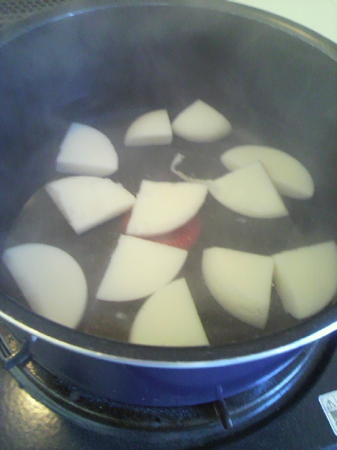 沸騰した鍋に、切った餅を入れて火をつけずふたをして、9分でつきたてのお餅になりました^^