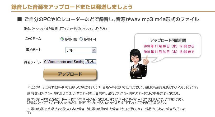 しょうがないのでmp3形式に変換してアップロードしました^^;