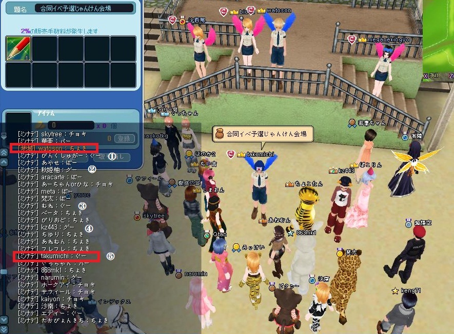 司会はwatosonさん、「ぐー・ちょき・ぱー」の3種をほぼ確実にだすと予想しての賭けです。