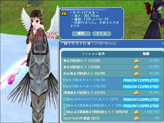 昨日落ちる時、497匹だったので、間違いなく今日クリアするとは思ってました。