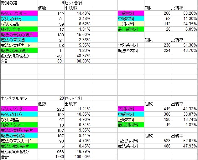 青銅の錨はキングルより下級材料が多く中級材料が少ないんですね。