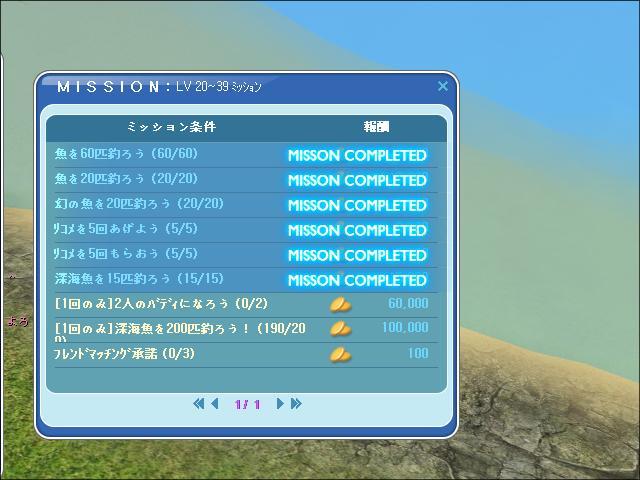 ミッション達成しました。深海魚はあと10匹でクリアーです。