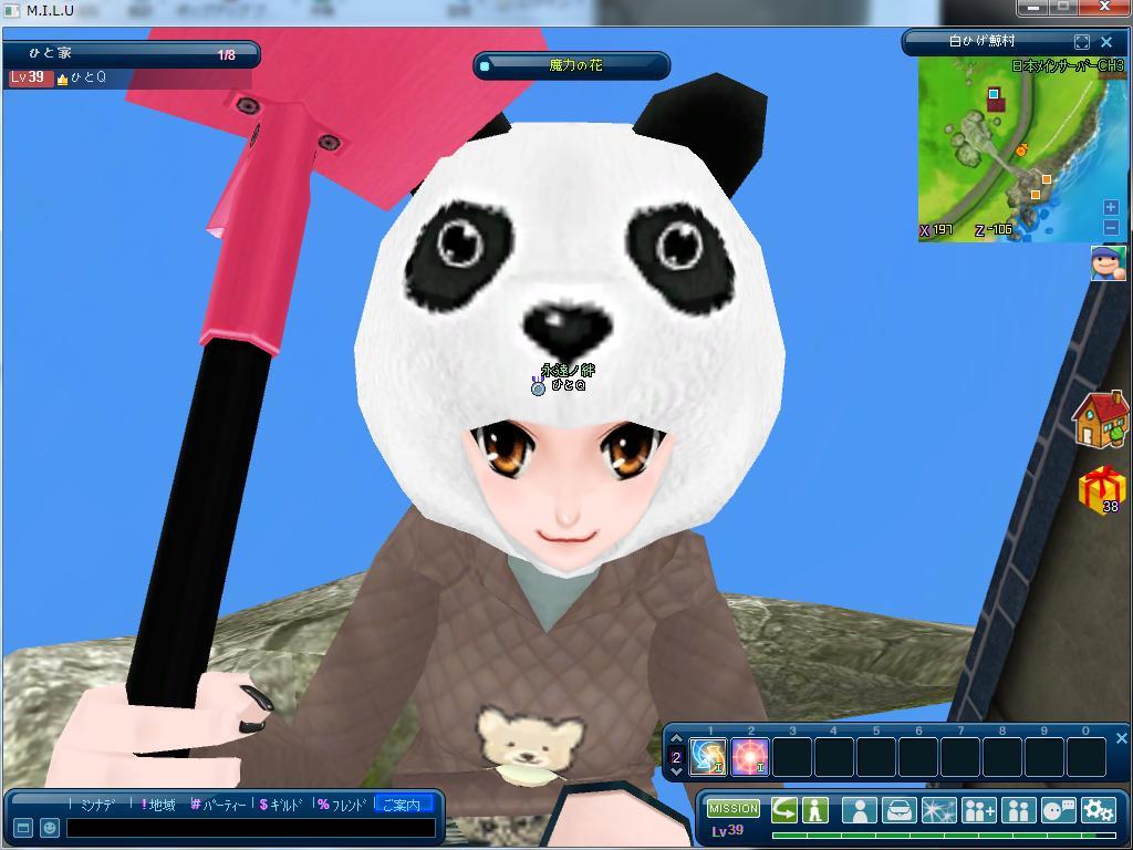 釣ってるぱんだーず親分の隣で、後ろの花が咲くのをひたすら待っていますw