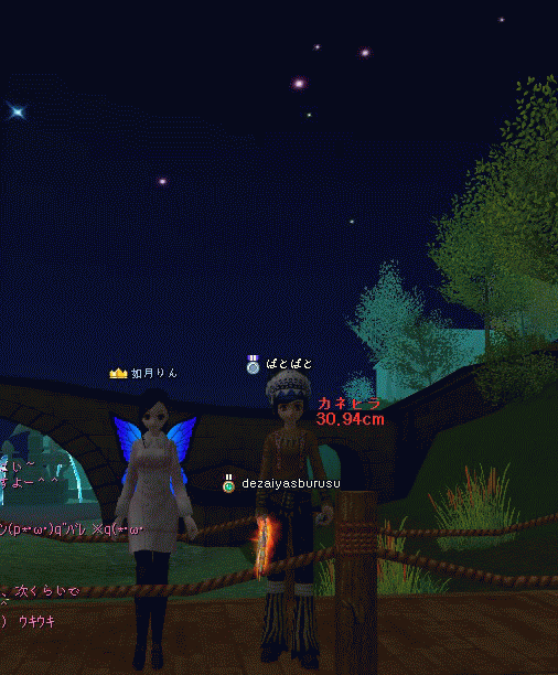 日記を書いた後で、フラフラと材料釣りをしていたら如月りんさんがきて、色々励ましてもらったり、魔法をかけてもらったりして、ここはやっぱり頑張ってアップみました。餌はもちろん自分で掘った紫エビを使って。