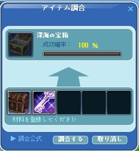 釣りで出た錆びた箱を開ける手段が無かったが、ミルぽんから1本出てさらにゴールデンフィッシュも釣れて計2本出たので早速深海の宝箱にしてみました。