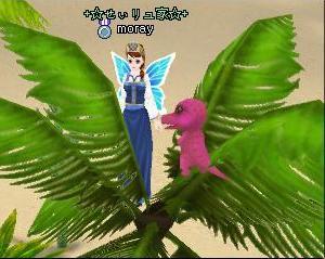 木の上に飛んだら、目の前にピンクのワニが!!
