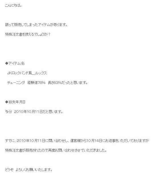 と勧められ、ダメもとで運営さんに問い合わせしてみました。
