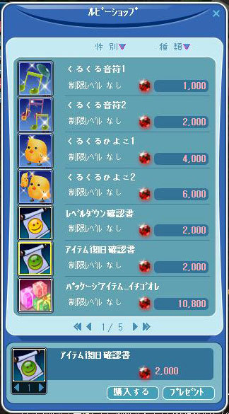 ルビーショップにてアイテム復旧確認書を購入した後、