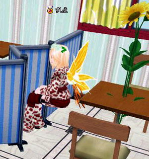 第一家主は空気イスだし、ヒマワリはテーブルを突き抜けて生えてるし。