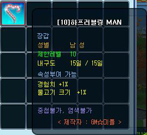 制限10、耐久15日、経験値、魚のサイズ+1%