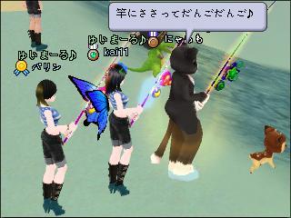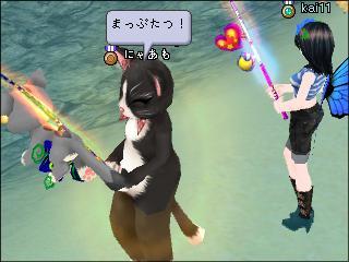海に落ちたパリンさんを釣る。