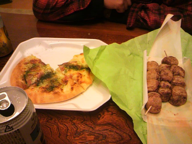 遅めのランチはピザとタコ焼きw