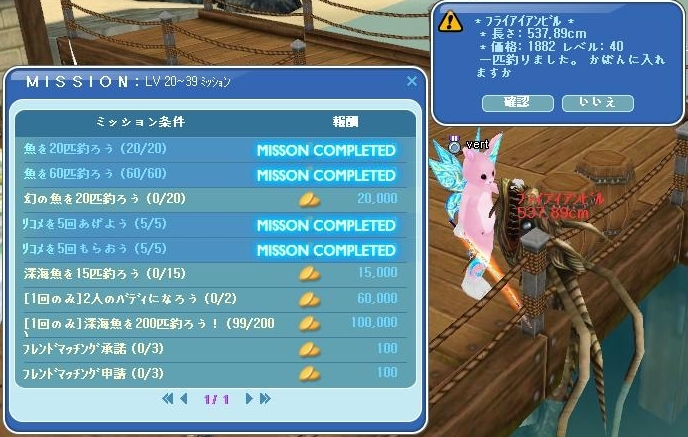 深海魚100匹目が釣れました。やっと半分。もうすぐLv37になります。間に合うかな?