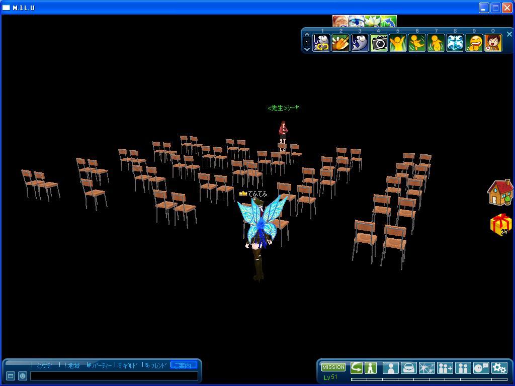 | 真っ暗な教室、しかもイスだけ(・・;) |