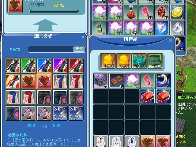 着用アイテムは全て40%で、失敗しても各『気持ち』は残ります。