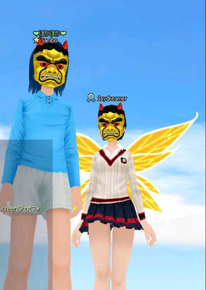 鬼面二人組み。一人は女子高生、一人はパンツ丸出し。