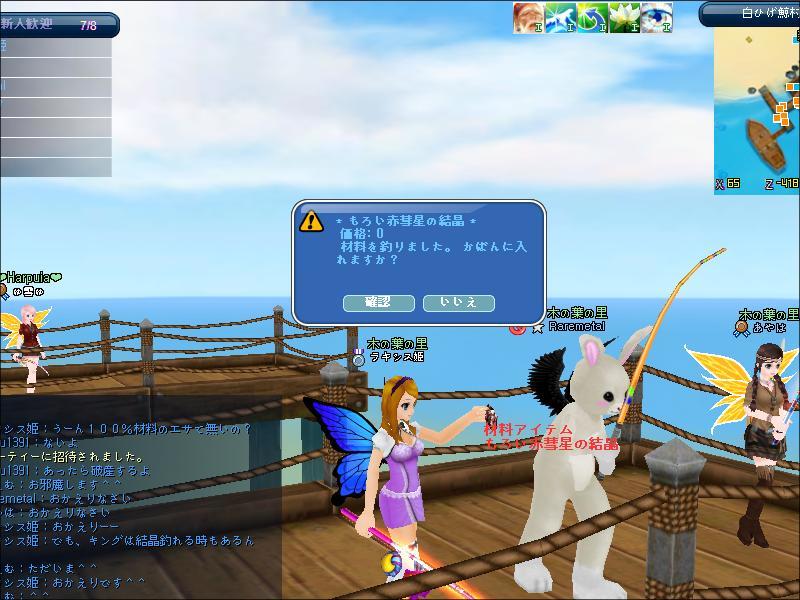 でも結晶釣れる、というか材料来る確率が低く、なかなかかからない。
