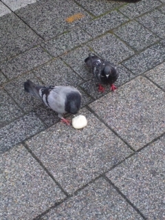 豚まんをつついている鳩を発見!!
