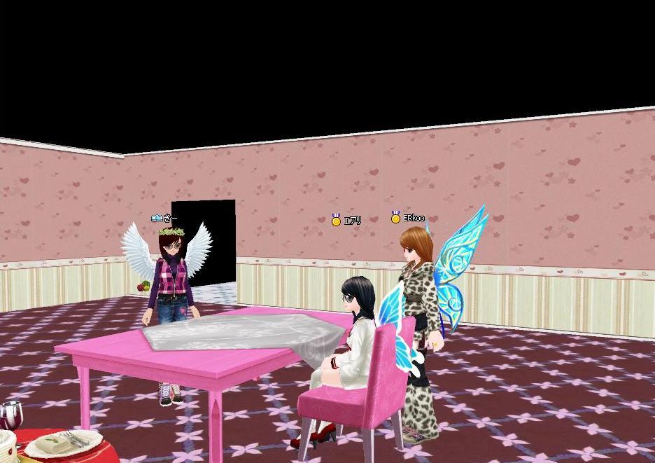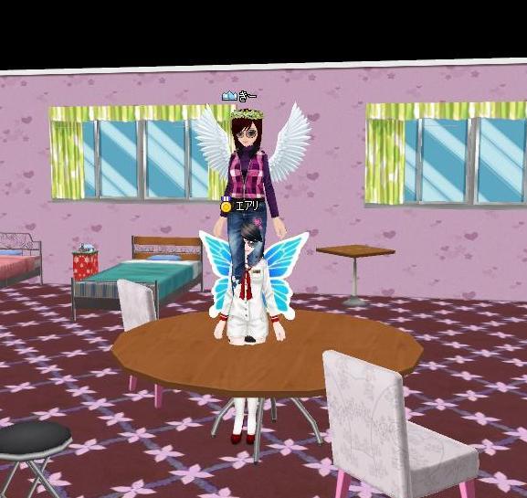 このテーブルはすり抜けられるのです~w