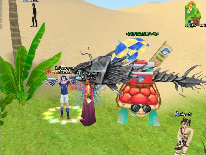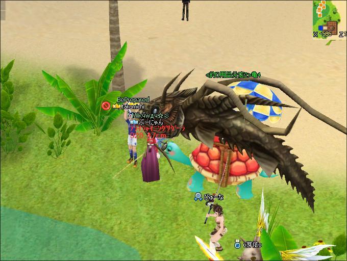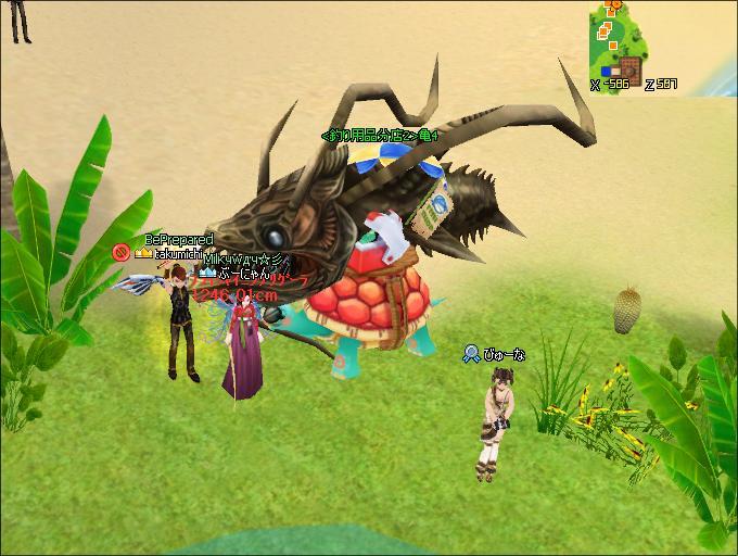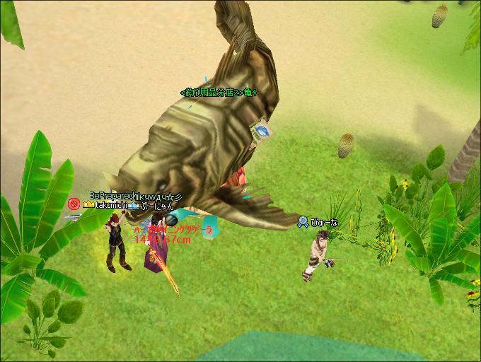どう見ても、亀四郎さんの甲羅の上のクーラーボックスをしっぽでべちべちやってるようにしか見えませんでした ww