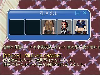 今日のメンテ後、ミルトモさん2人がマイルームのタンス内コスの耐久切れた~~>< って。