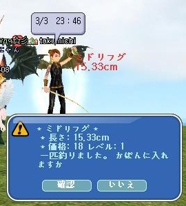 昼に密漁している時に33ゲットしましたが、文字無しPCでは、名前も吹き出し文字も見えないので意味を成しませんでした^^;