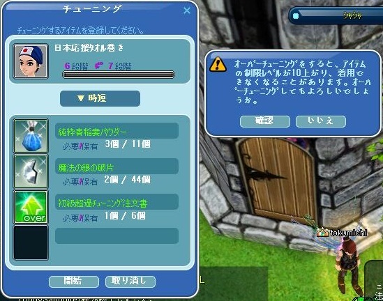 時短がついてる、頭アイテムから挑戦しました。