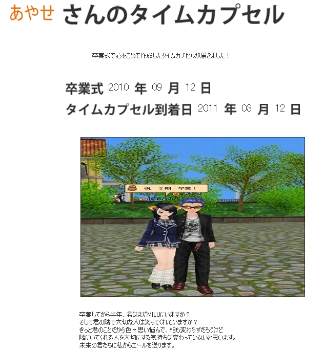 タイムカプセルのメッセージは2種類あって、上記は自分に向けて。