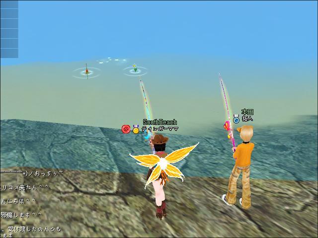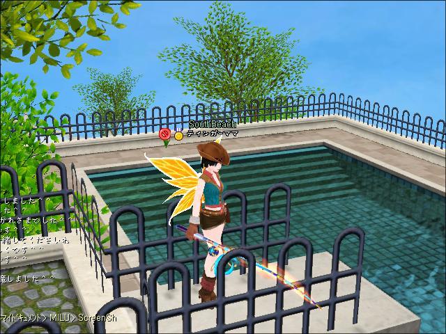 じゃ、プールサイドに上がって、良く見ようと思って、テレポしたら、今度竿を投げなれなくなてしまい…仕方なく、学校の近くでぶらぶらして時間をつぶしました。