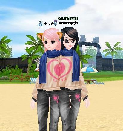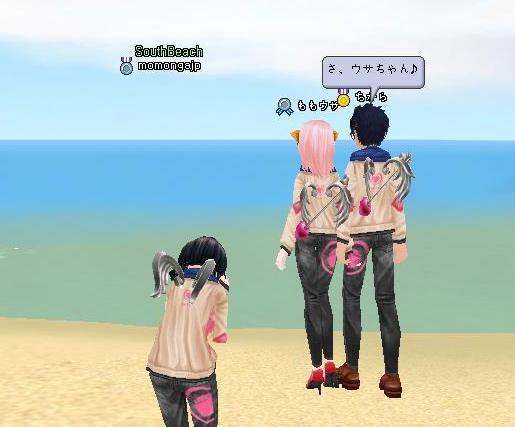 南の浜辺で ちからくんと一緒に釣りしてたら ももウサちゃんが 遊びにきたよ