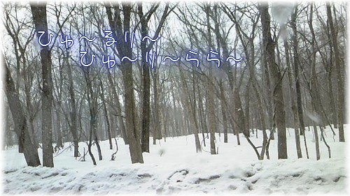 ちょっと大きい道路を離れるとこんな感じ。現実はまだまだ冬ですねぇ。