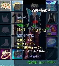 青結晶が多かったので白桜の髪飾りの方を作ってみました桜を捨て花代わりに使ったけど1回失敗してしまった・・・さっそく時短掛けまくろうと思ったけど結晶やカードにしていて手元には1回分しかなかった6段階までしかチューンできないけどこれで初のオーバーチューニングも試してみようと思います^^