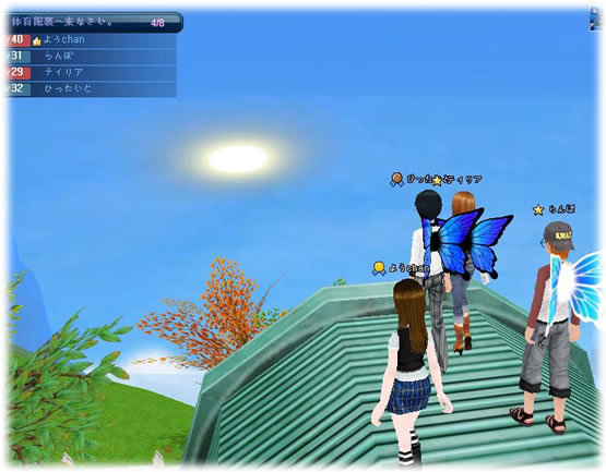 4人で夕日に向かって叫びました。
