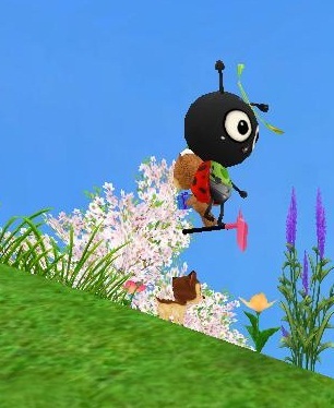 てんとう虫さんは 手が短いので、 足で掘ります。