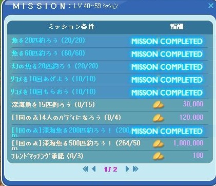 休日は深海魚かマボのどちらかがクリアできるかどうかなんですけど<どちらもクリアするのはまれ>、どっちかといえば1万G多いマボでクリアできた方がいいですねー。。