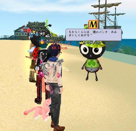 南の浜辺で釣ってたら 男の子の てんと虫さんが やってきた