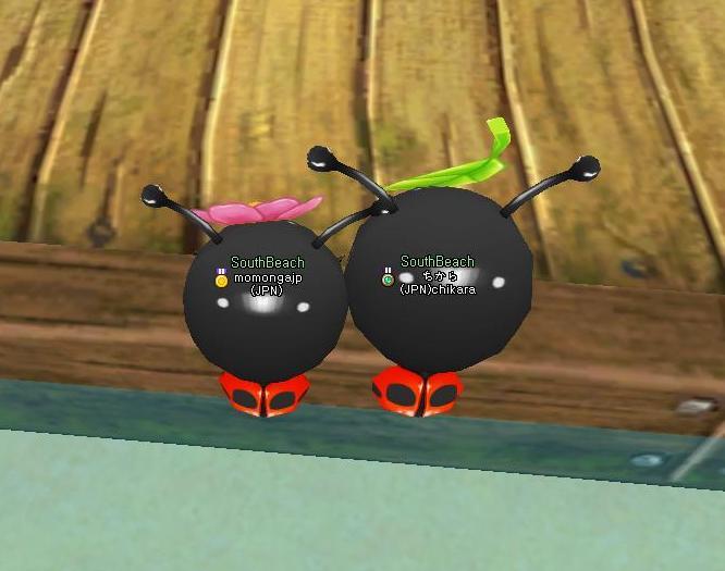 二人(二頭?笑)で いけすの柱にとまって しばし休憩 ふぅ