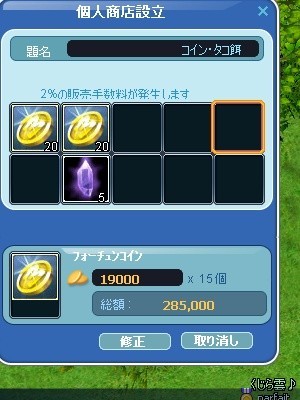 数時間ぶっ続けでPlayしていたので小休止がてらに露店を出して休憩から帰ってくると