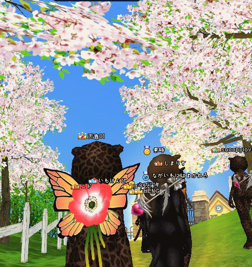 桜の下をみんなで行進