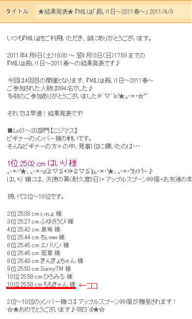 10位ですv(≧∇≦)v イェェ~イ♪ 教えてくれたまなさんありがとうございます。