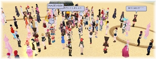 参加賞が手渡しって^^;無茶するんじゃありません!!GAさんも重そうで、並んでる列があるのにどっかに走って行ってしまったり、取引出せなかったり・・・人数多いならウェルカムイベのようにSS添付とか 無理のない方法にすればいいのに^^;