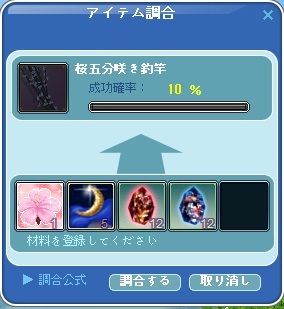 で、日記のネタ作りも兼ねて珍しく低確率イベント物の調合に挑戦してみた。