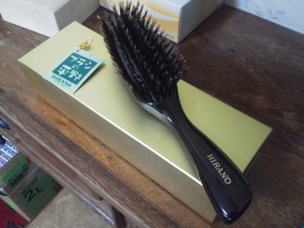 今回のは猪毛・・・・おじさん曰く「あなたの場合はもっと硬い毛のこれですよ・・・・」と・・・・「これで10回といてみてください違いがすぐにわかりますよ」と・・・・