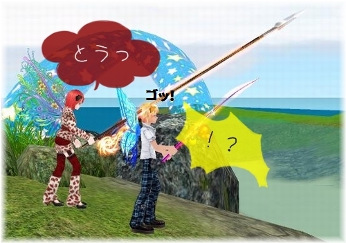 三歩 歩いて振り向きざまに グサッ! 負けません(`・ω・´)b なんの勝負だw