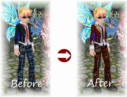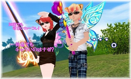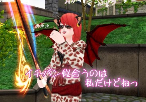 茶色衣服自体は似合ってるけど、青い羽が どーも似合わないってことで 小悪魔ウイング装備。やっぱり同系色はいいですね!この羽が修繕できたらいいのになぁ。