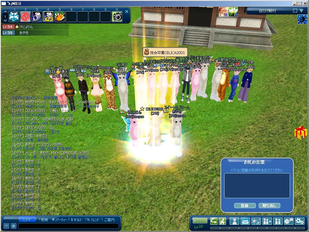 準備の段階では、60匹ミッションを終えLv19でのExpを98.56%で止めて臨んだ卒業式、釣り始めて2匹目で確定となりナンとか無事にLv20へアップをご披露とココまでは順調♪