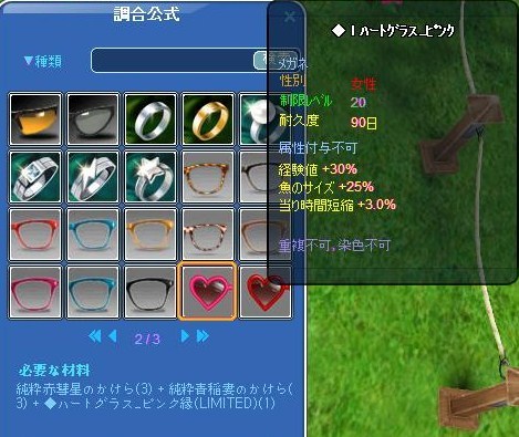 そうそうこのサングラスレベル上げ調合どとに青赤3個づつ要るそうですにゃ><